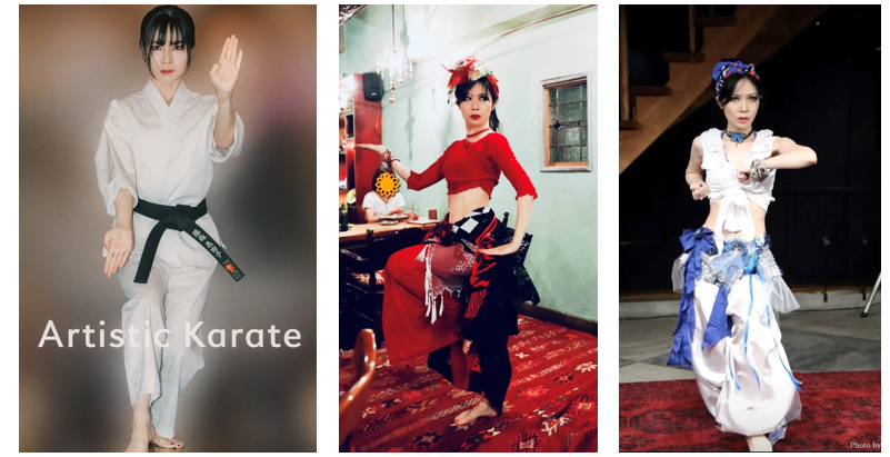 *ベリーダンスの先生でもあるMayuは下北沢にて武芸(martial arts)としての空手を指導中。